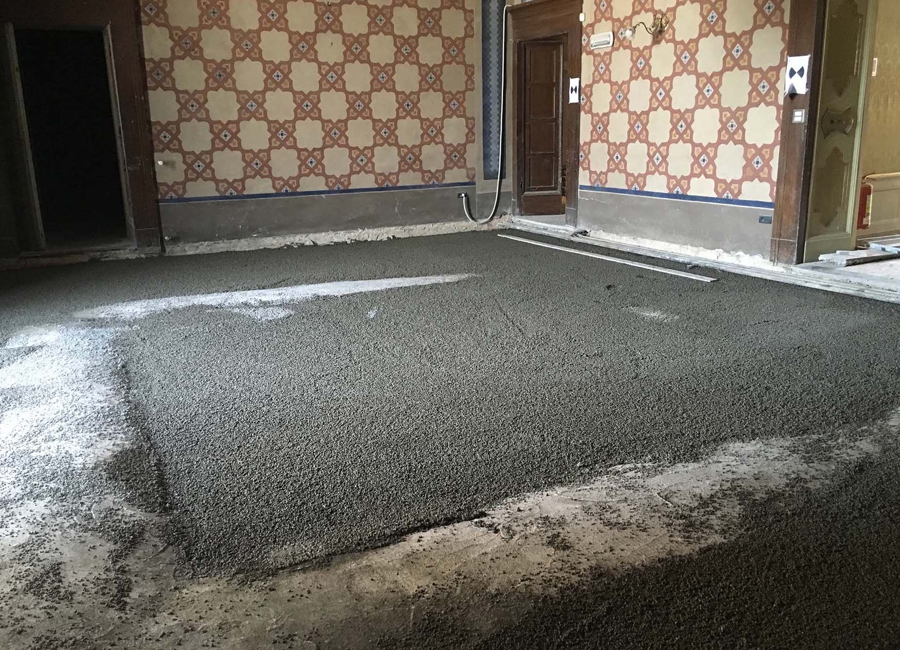 Particolarmente delicato, sia per la qualità tecnica che per le quantità in gioco, la riqualificazione e il riempimento delle volte che caratterizzano i diversi piani dell’immobile: dal punto di vista operativo, il recupero delle volte è stato eseguito rimuovendo il vecchio materiale di riempimento nelle cavità risanando la struttura portante muraria con prodotti specifici e realizzando un riempimento con il sottofondo alleggerito con Lecacem Classic.