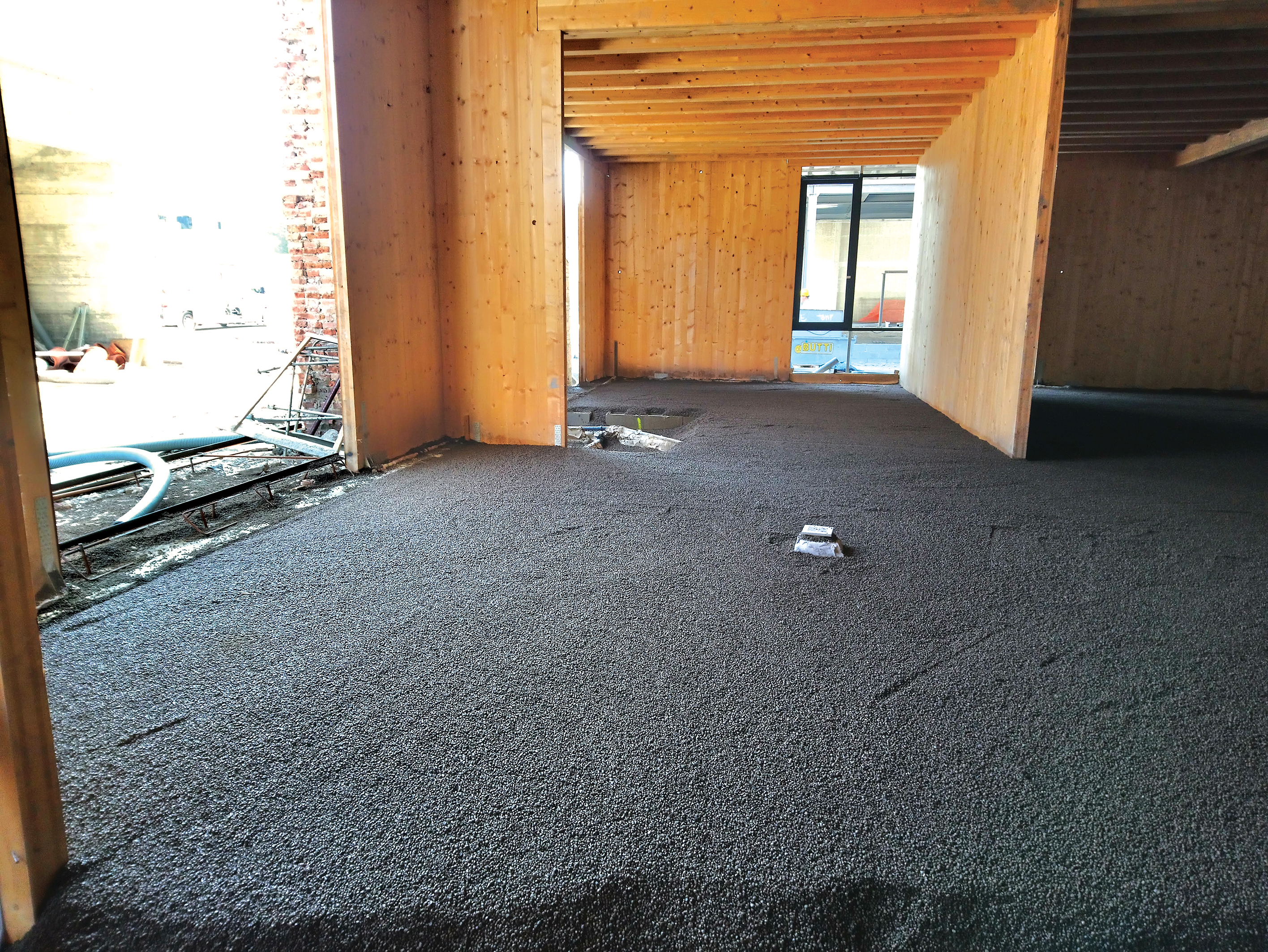 Dal punto di vista applicativo, l’utilizzo di Leca TermoPiù che in questo caso è stato posato sfuso (ma in generale può essere fornito anche in sacchi, imboiaccato o cementato) ha consentito una notevole velocità nelle attività di pompaggio del materiale. Sopra lo strato di Leca TermoPiù è stato poi applicato a secco un tessuto non tessuto e quindi realizzata la soletta di basamento.