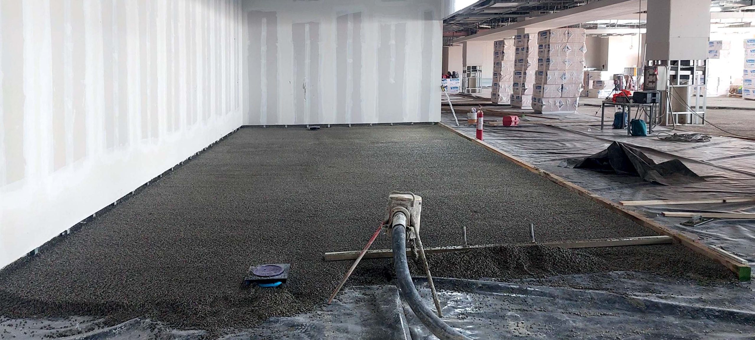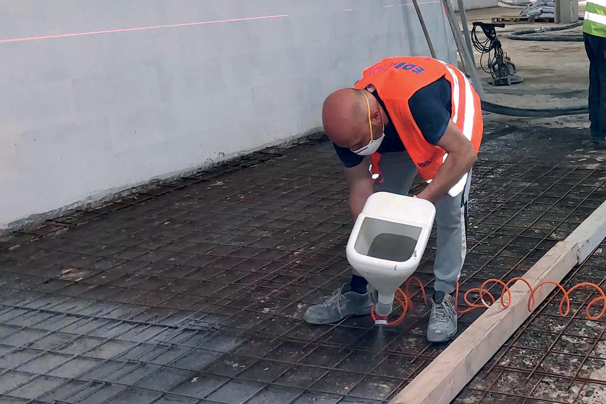 Per lo strato di sottofondo alleggerito, in ne, in cantiere è stato utilizzato Lecacem Classic, premiscelato a veloce asciugatura anche ad alto spessore a grana media a base argilla espansa LecaPiù. Indicato per la realizzazione di sottofondi alleggeriti, strati di isolamento termico, pendenze, coperture e strati di compensazione, il prodotto presenta dopo soli sette giorni un contenuto di umidità residua inferiore al 3% in peso.