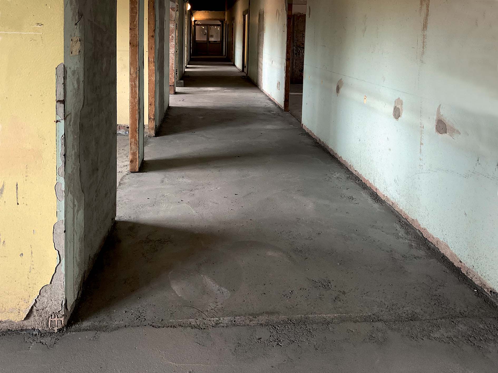 Dal punto di vista esecutivo la principale problematica affrontata dall’impresa aggiudicataria dei lavori, la Allodi di Parma, è stata quella di individuare una soluzione tecnica che fosse in grado di consolidare e incrementare le prestazioni statiche dei solai senza però gravare sulla struttura esistente, esigenze perfettamente soddisfatte dal sistema di consolidamento struttura- le leggero dei solai Leca-CentroStorico messo a punto da Laterlite, il sistema che si basa sulla sulla formazione di una nuova soletta in calcestruzzo leggero strutturale Leca perfettamente interconnessa al solaio esistente grazie all’impiego di specifici elementi, i Connettori Centro- Storico, in grado di aumentare la resistenza e rigidezza del solaio esistente incrementandone parallelamente la portata.