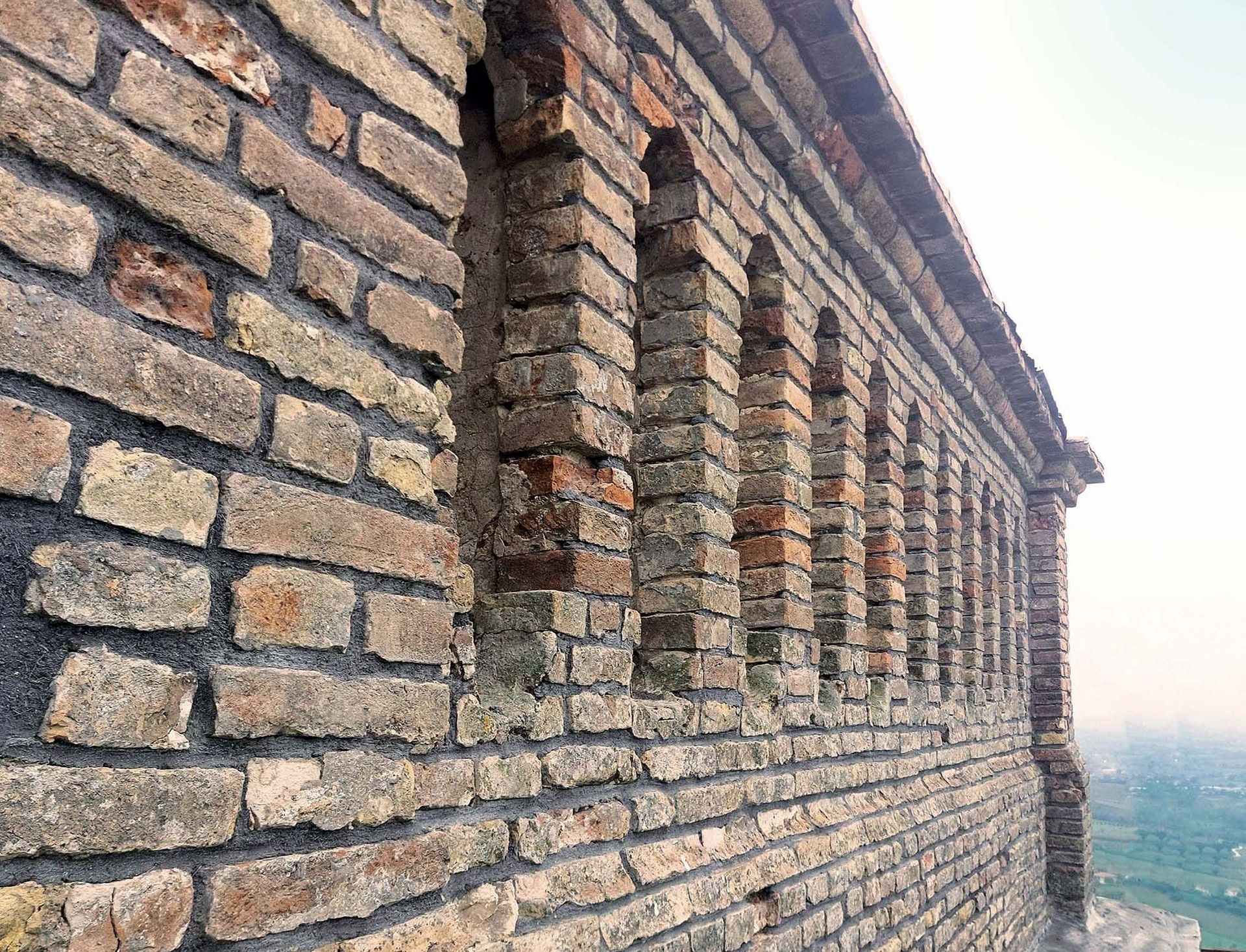 L’intervento ha interessato esclusivamente la superficie esterna della muratura, preservando l’integrità del paramento in laterizio faccia a vista, in conformità alle indicazioni della Sovrintendenza.