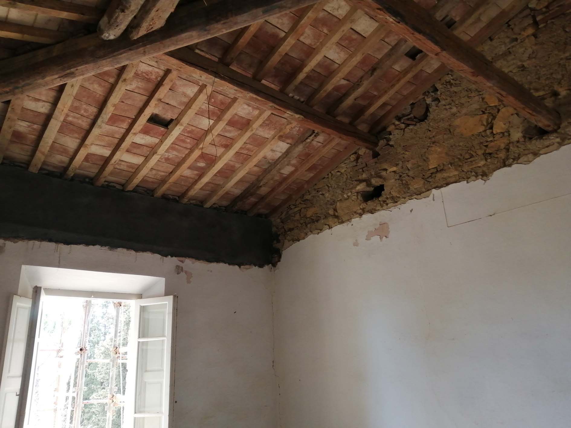 Nel caso specifico della villetta di Colognole, essendo presenti solai misti sia con travi in legno sia con volte in acciaio, sono stati utilizzati i Connettori CentroStorico nelle versioni legno e acciaio e il Connettore Perimetrale per il collegamento dei solai alle pareti.