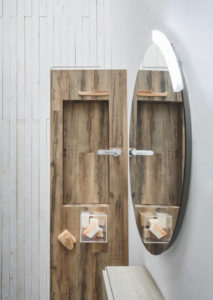 Linfa 04 è invece il piano realizzato in Hpl (laminato ad alta pressione) con lavabo integrato Plaza. La finitura Woody regala uno stile minimal all’ambiente ma con il calore dell’effetto naturale del legno. Elegante, pratica e raffinata è la composizione Sky 183 che si contraddistingue per il piano top in Corian con lavabo integrato Fly 70, su base laccato bianco opaco. Il Corian, gradevole al tatto, di facile manutenzione e resistente all’usura, trasforma l’ambiente bagno in un’esplosione di forme e linee.