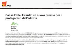 Per supportare il comparto e premiare le eccellenze, all’interno di SAIE Bari, verranno assegnati i Cassa Edile Awards, una serie di premi dedicati ai protagonisti del settore edile che si sono contraddistinti per i loro comportamenti virtuosi.