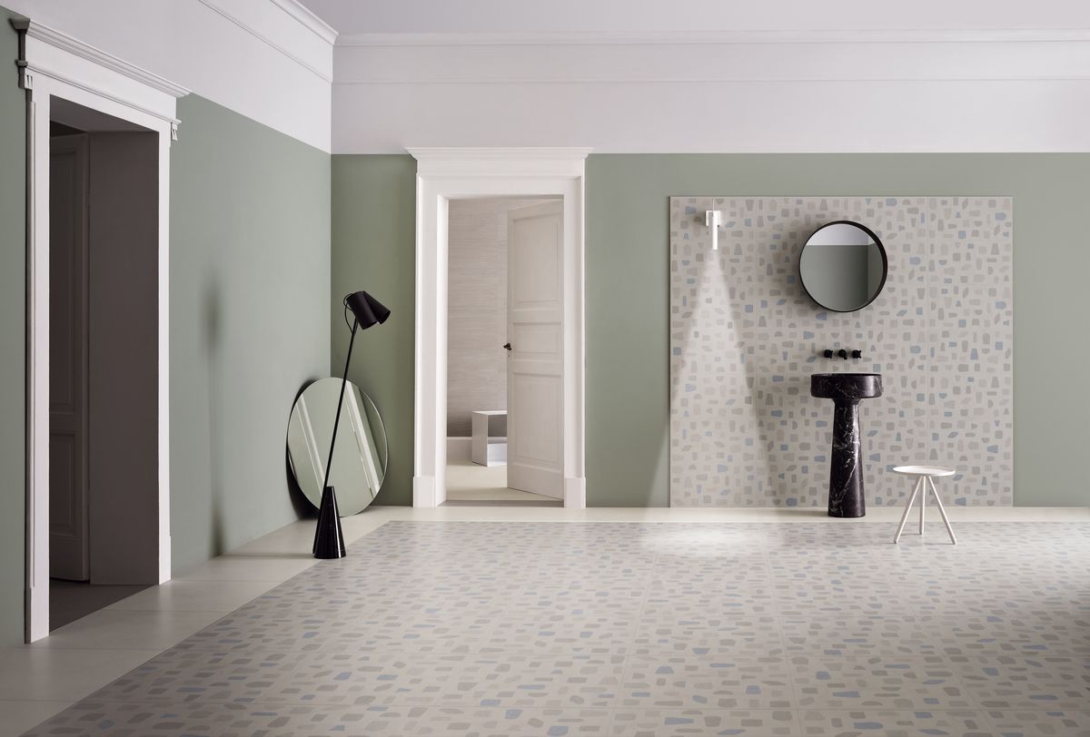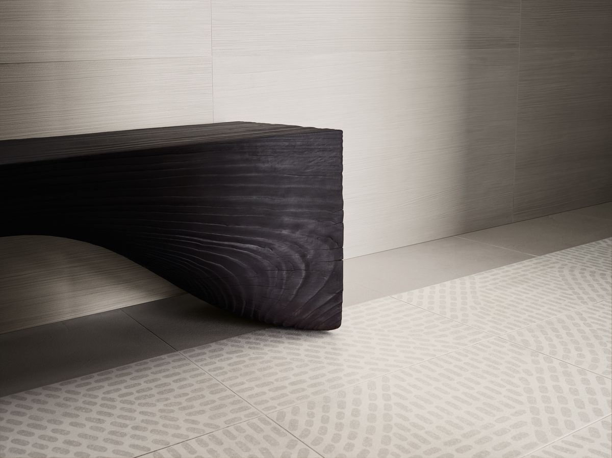 Pavimenti e pareti possono in questo modo ‘vestirsi’ combinando superfici brillanti e mat; monocromatiche e decorate; effetto resina con la pietra, dando vita ad inserti e movimenti nello spazio.