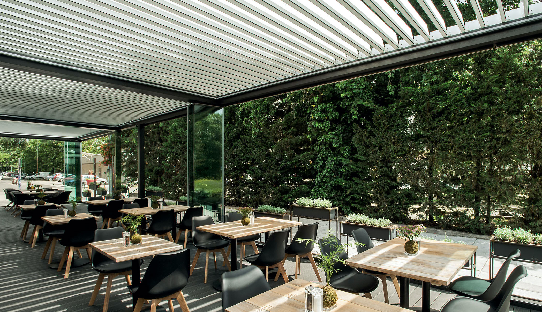 Di recente Don Pepe ha deciso di rinnovare l’immagine dei propri ristoranti con scelte di design contemporanee, basate su linee sobrie e funzionali, su una ristretta gamma di colori neutri, su materiali “caldi” e sulla trasparenza degli ambienti. Per le pergole, è stato scelto Twist, il sistema bioclimatico dal design essenziale di Gibus.