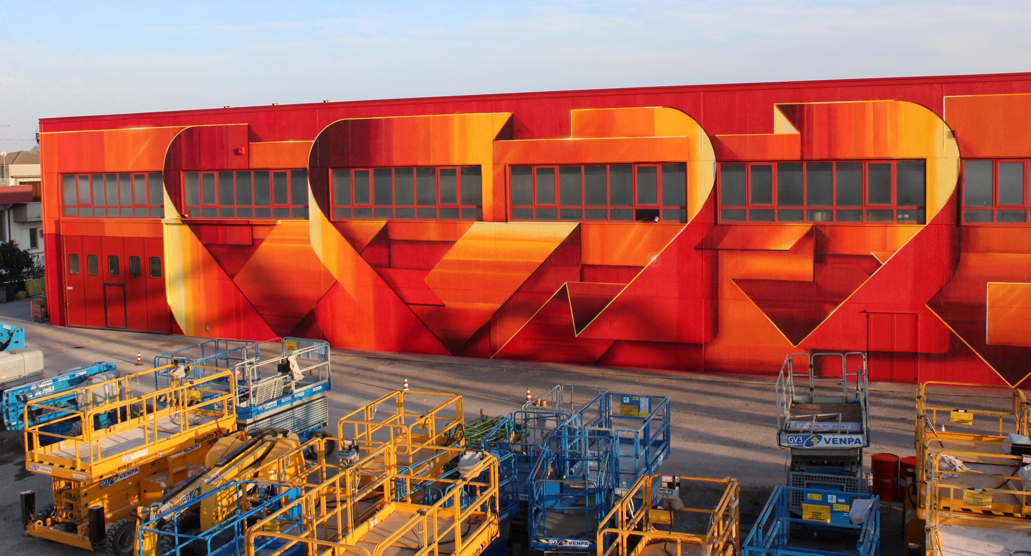 Si tratta di una maxi opera della lunghezza di 60 m, realizzata sulla parete della sede principale di Venpa: per la realizzazione pratica sono state utilizzate diverse piattaforme di lavoro aereo tra quelle in dotazione a Venpa.