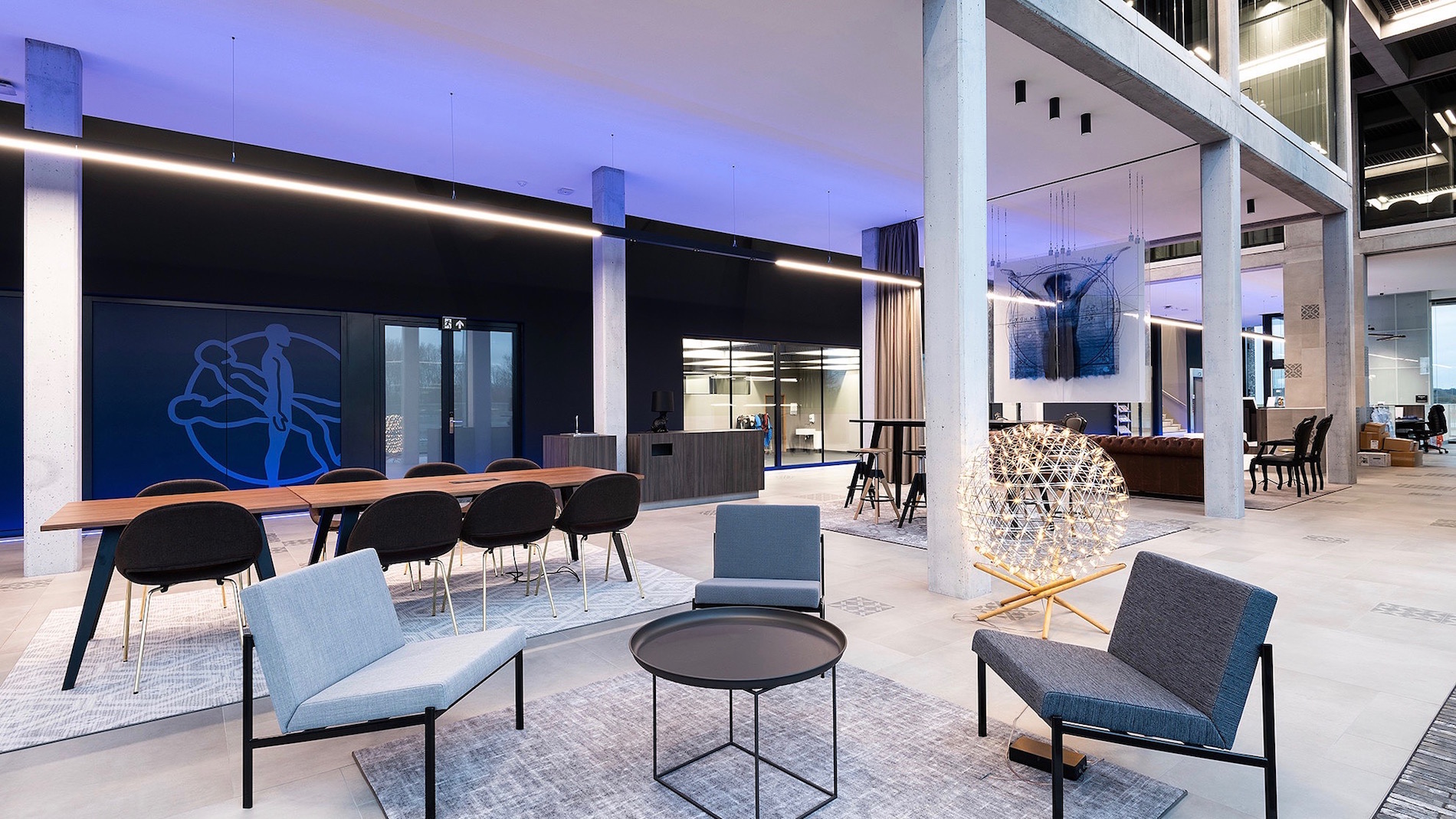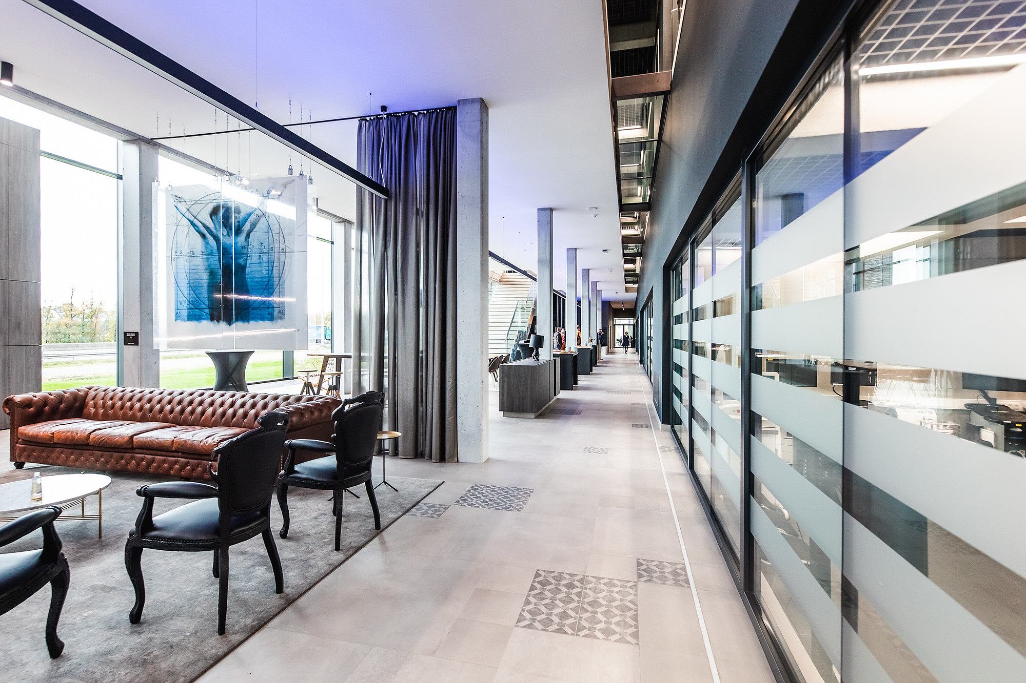 I moduli District sono presenti nella nuance Boulevard che esalta la luminosità dello spazio. L’ambiente viene inoltre impreziosito dalla composizione multiformato della posa, intervallata da un motivo geometrico che crea un ambiente accogliente e informale nelle aree dedicate alla convivialità.