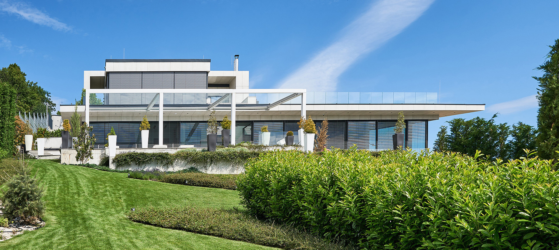 Una villa, dalla morfologia peculiare, a tratti aguzza e decisa, in ogni caso ultramoderna, immersa nel verde del 12esimo distretto di una città suggestiva come Budapest. Disposta su più livelli, la residenza ha una bianca facciata ventilata che contrasta con il verde del paesaggio circostante.