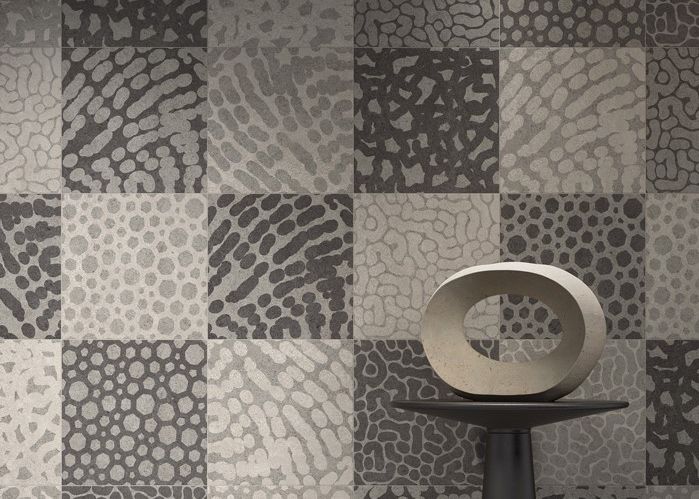 Zoom è la rappresentazione in chiave macro di quattro pattern che riflettono sull’organicità del cemento – Reef, Dry, Foam, Tide – estremizzati attraverso un tratto vigoroso e ingigantito. I motivi grafici vengono proposti in formato 60×60 cm per comporre veri e propri tappeti decorati, oltre che nel più classico formato 20×20 cm che reinterpreta in chiave inedita la tradizionale forma decorativa delle cementine. Il progetto presenta una varietà di grafiche da posare a pavimento o a parete in maniera randomica, per conferire allo spazio un’impronta decisamente contemporanea, decorativa e distintiva.