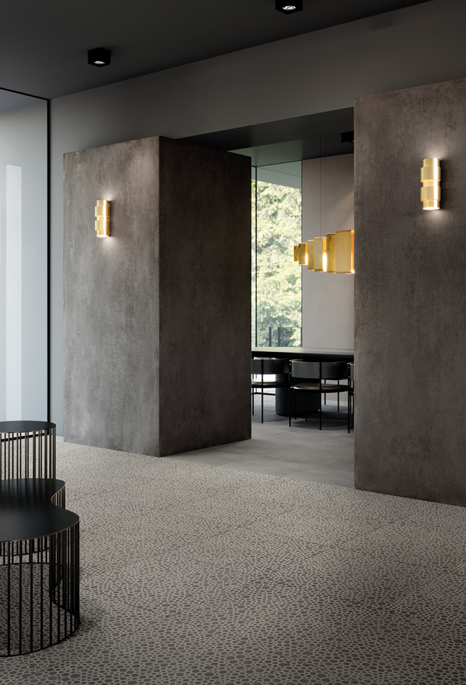 Zoom affianca l’ampliamento della gamma della serie Concreto che si arricchisce oggi di nuovi spessori (10, 11 e 20 mm), formati, textures e di un ulteriore impianto decorativo ampio e variegato. Lanciata su tecnologia Slimtech, attraverso le grandi lastre in gres laminato, ultra tecnologiche e innovative per avere spessori ridotti (6 mm) e formati oversize (fino a 120×260 cm), Concreto diventa così un progetto aperto e versatile, soluzione ideale per progettisti o interior designer alla ricerca di elementi dalla forte personalità.