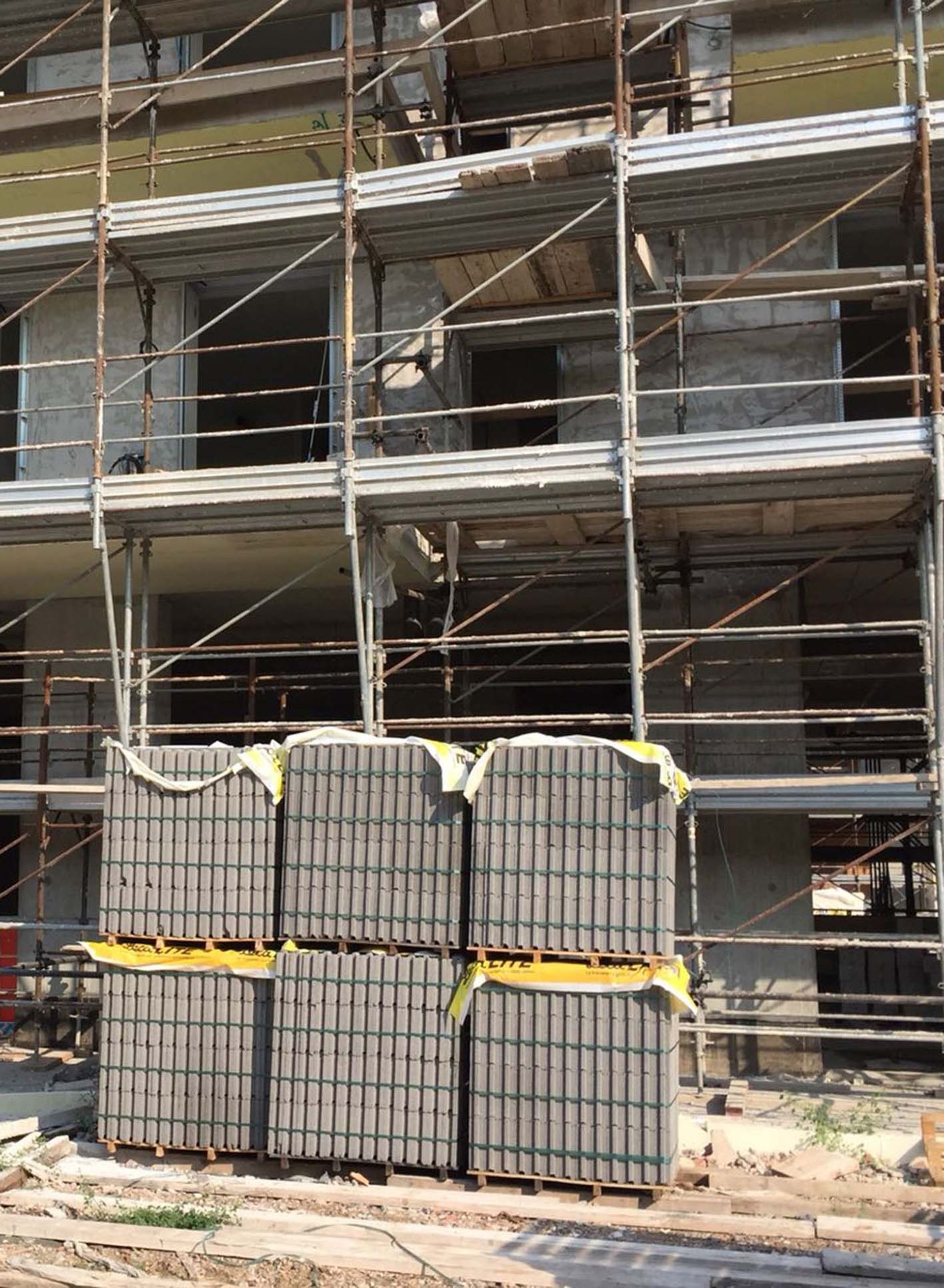 In questa realizzazione Lecablocco Tramezza Laterlite T8 Pieno è stato impiegato per 3.500 metri quadrati di pareti divisorie tra le unità abitative in un sistema pluristrato in combinazione con pannelli isolanti in lana di roccia ed elementi in laterizio per offrire protezione termica e acustica.