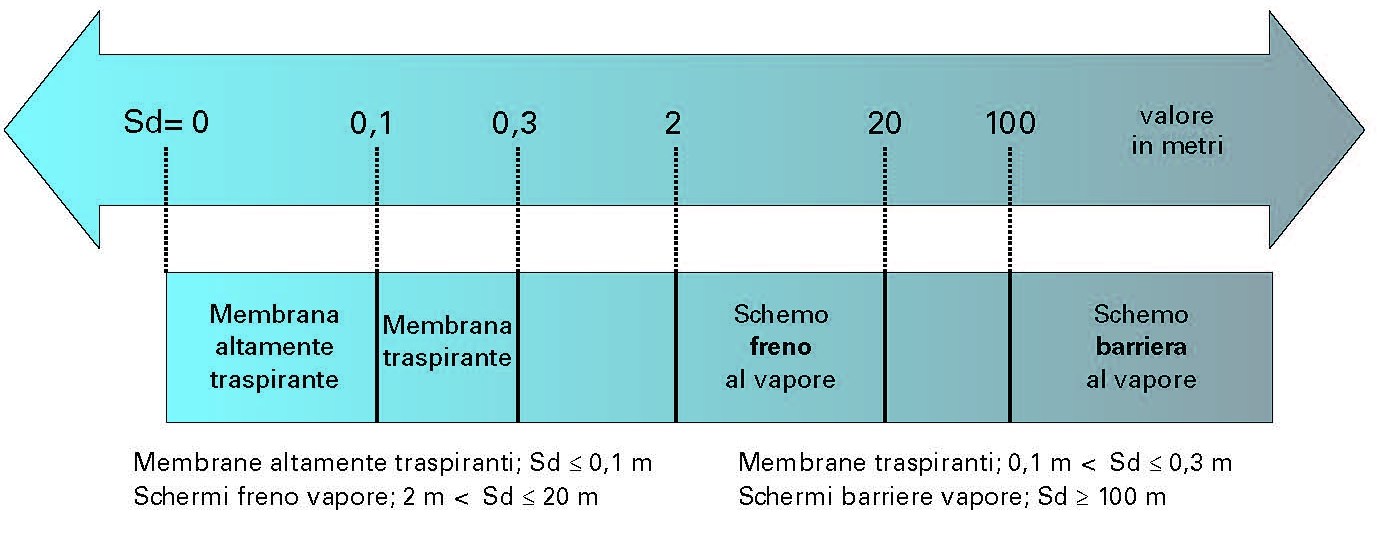 In particolar modo, per questo motivo, molta importanza viene data agli schermi freno al vapore, schermi barriere al vapore e alle membrane traspiranti che si differenziano tra di loro per caratteristiche di resistenza al passaggio del vapore acqueo, misurata con il valore Sd.