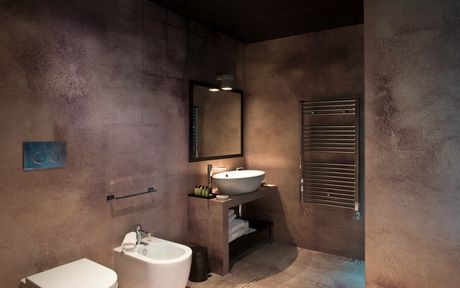 Una delle stanze – quella dedicata alla scherma – si aggiudica il primato dell’innovazione presentando un bagno interamente rivestito con EQ Dekor, la “seismic wallpaper” che affianca a grafiche accattivanti prestazioni strutturali che permettono di minimizzare il rischio di distaccamento dei componenti delle pareti in caso di sismi e di prolungare conseguentemente il tempo di evacuazione dagli edifici.