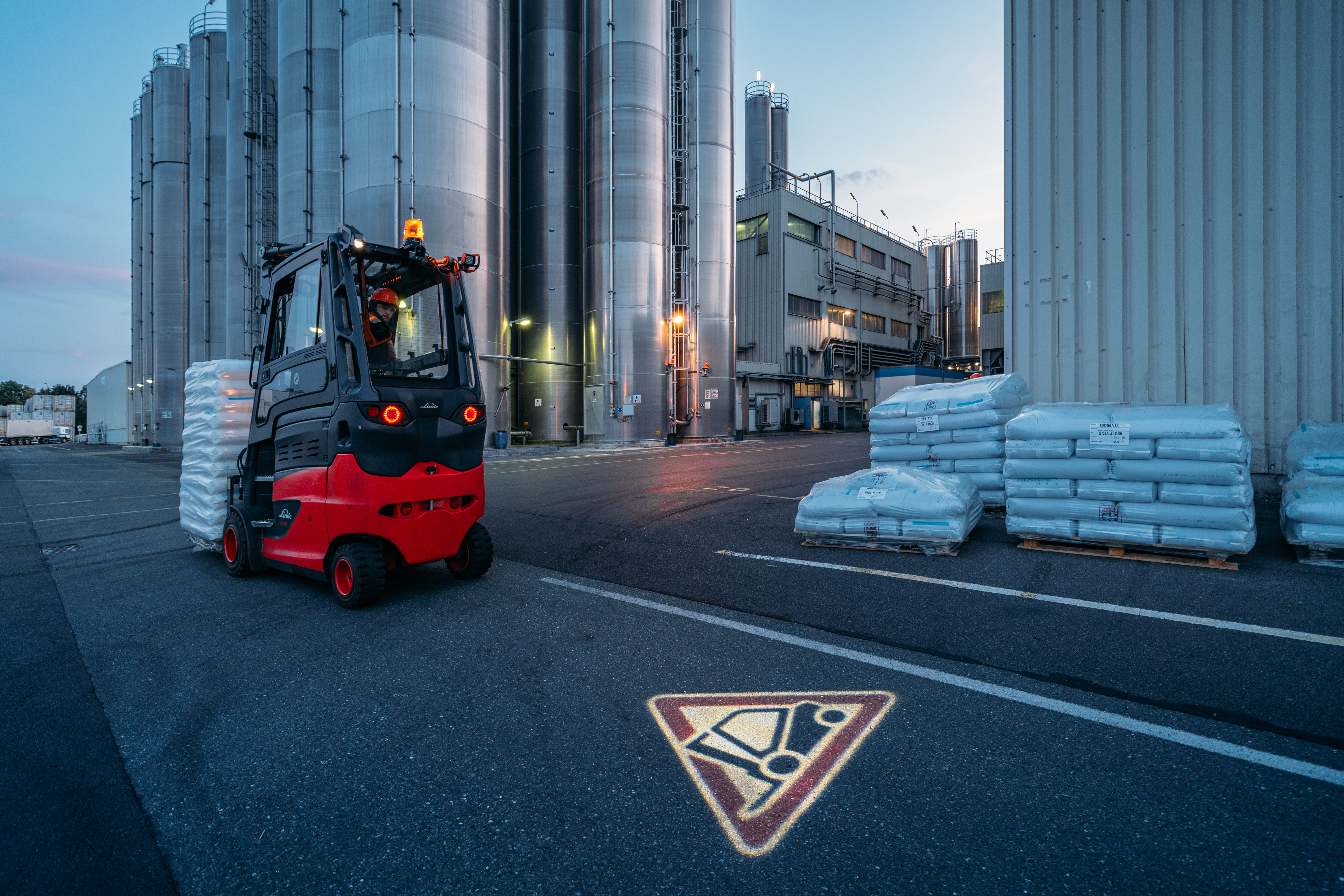 I sistemi di segnalazione ottica come il Linde BlueSpot e la sua versione potenziata, il Linde TruckSpot, sono ormai già utilizzati da migliaia di clienti. Il Linde TruckSpot proietta sul pavimento un triangolo di segnalazione rosso invece di una luce blu, attirando ancora di più l’attenzione dei pedoni o di altri conducenti di carrelli elevatori.