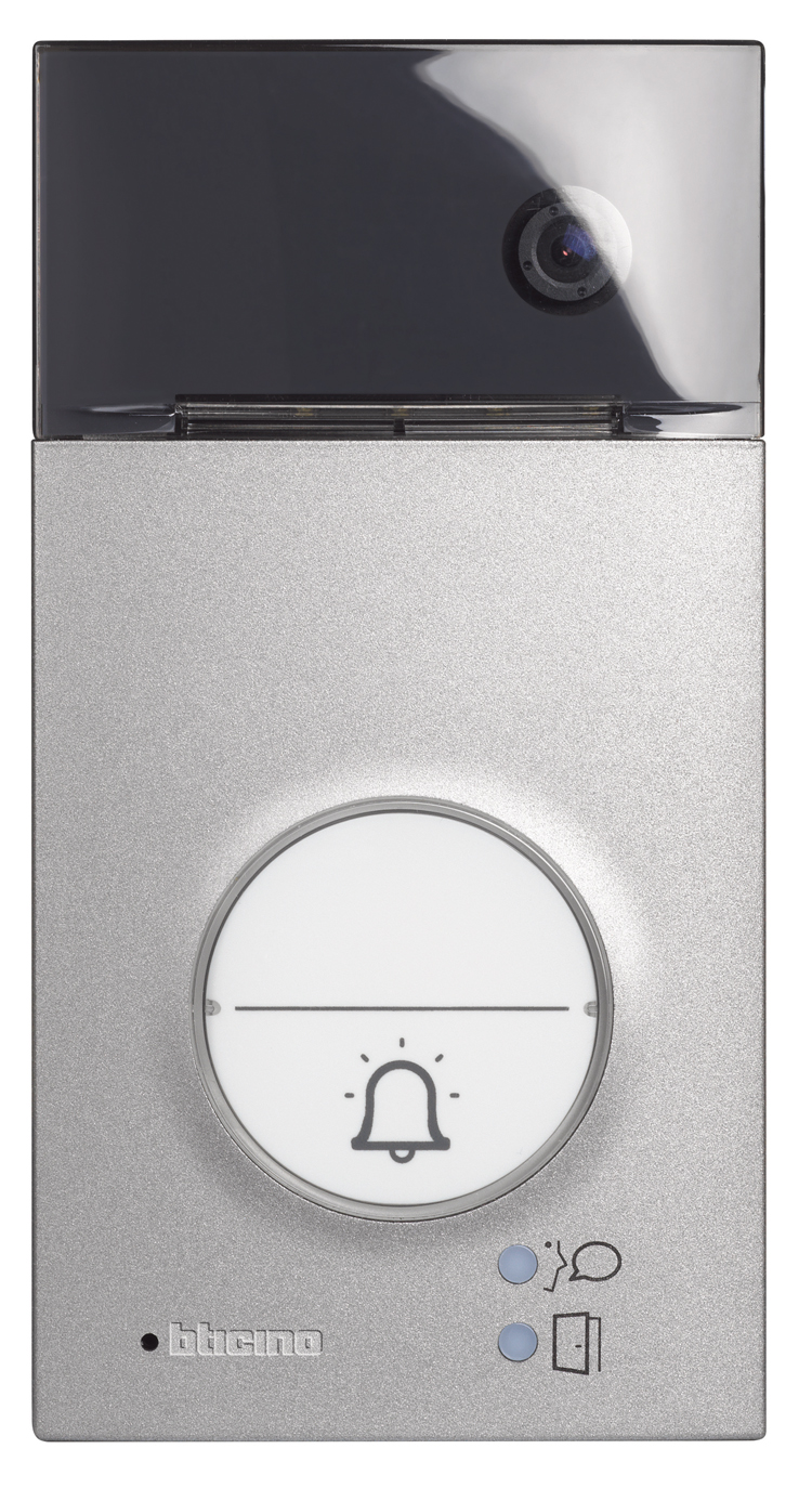 Telecamera. La telecamera grandangolare a colori è mascherata da un ampio e robusto schermo fumè che dona al dispositivo elevata protezione da urti e tentativi di effrazione, conferendo allo stesso tempo un’estetica elegante e raffinata. La telecamera consente un’ampia visuale, ben 105° in orizzontale e verticale, utile per una precisa valutazione dell’interlocutore e dell’ambiente esterno. Anche i Led d’illuminazione infrarossi per la visione notturna sono dissimulati sotto lo schermo di protezione della telecamera.