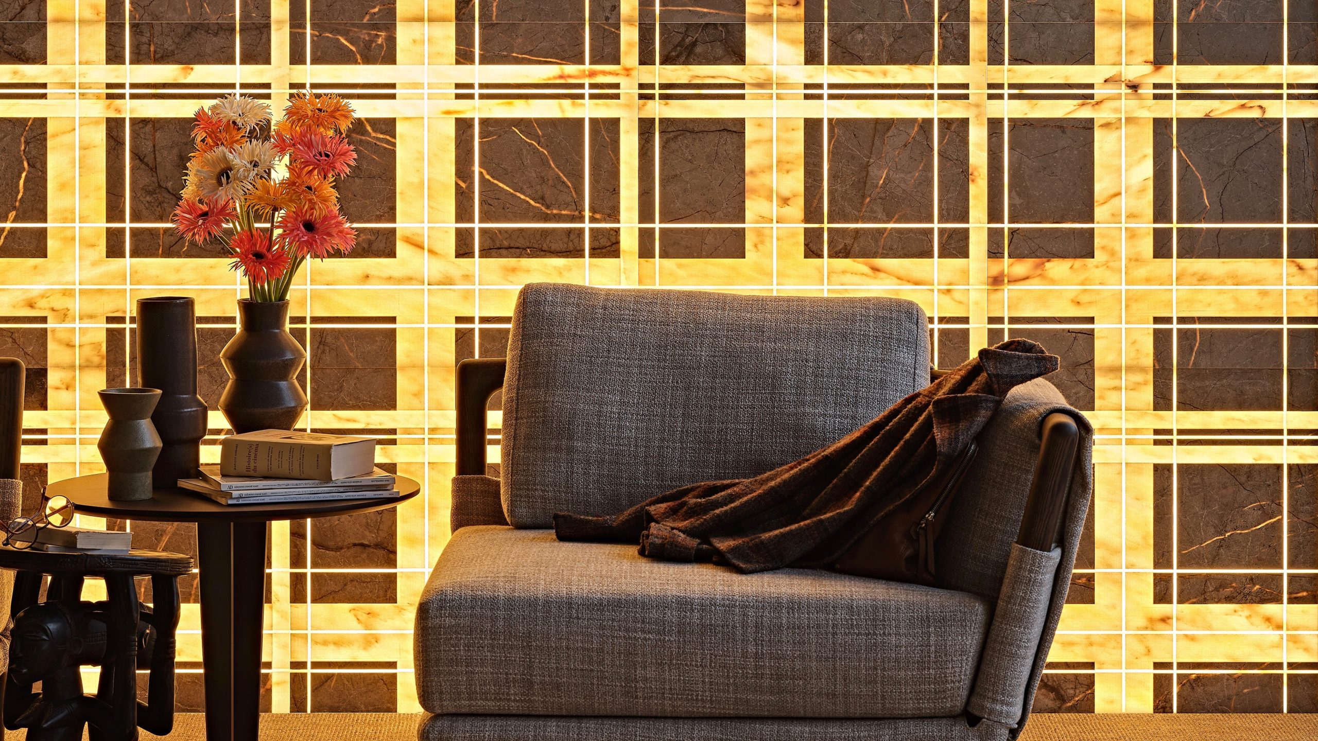 Tweed Greige, la parete in marmo retroilluminato