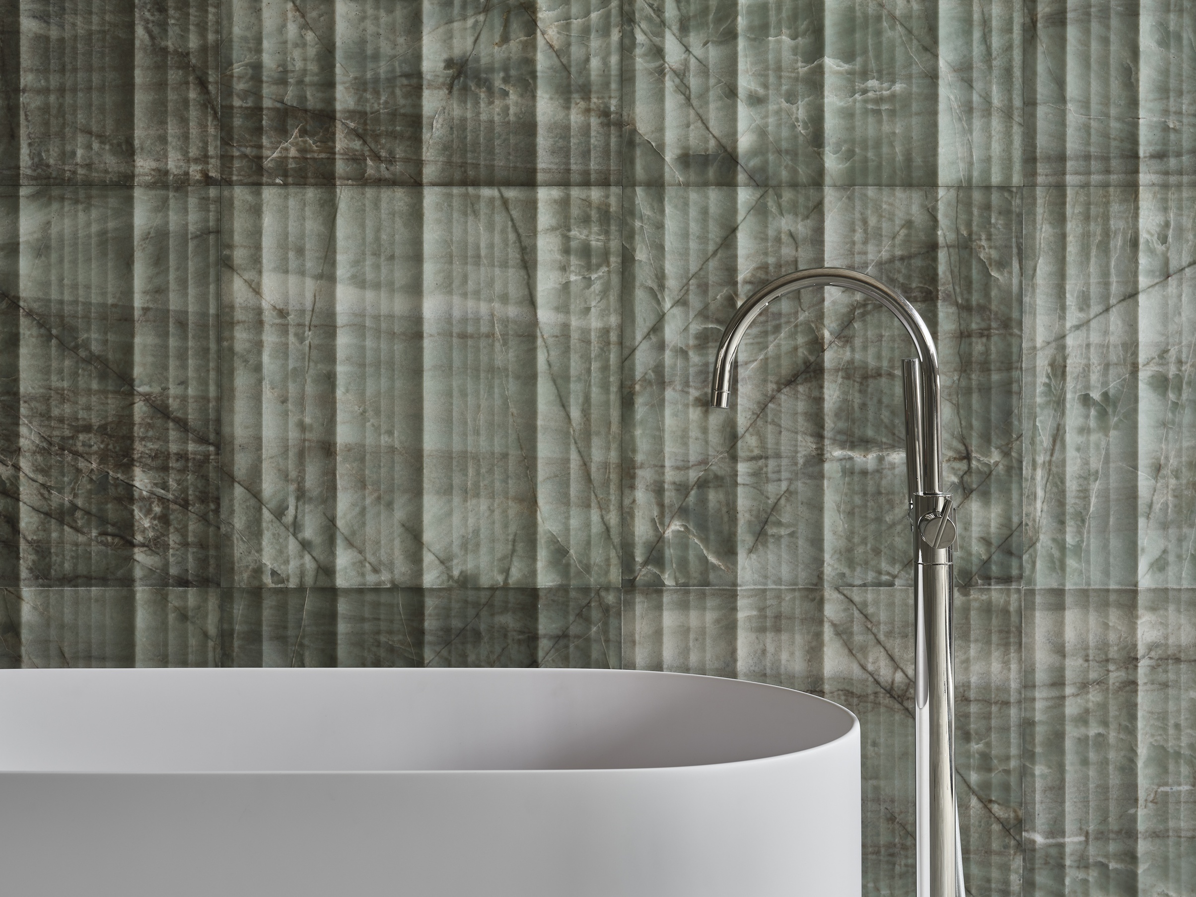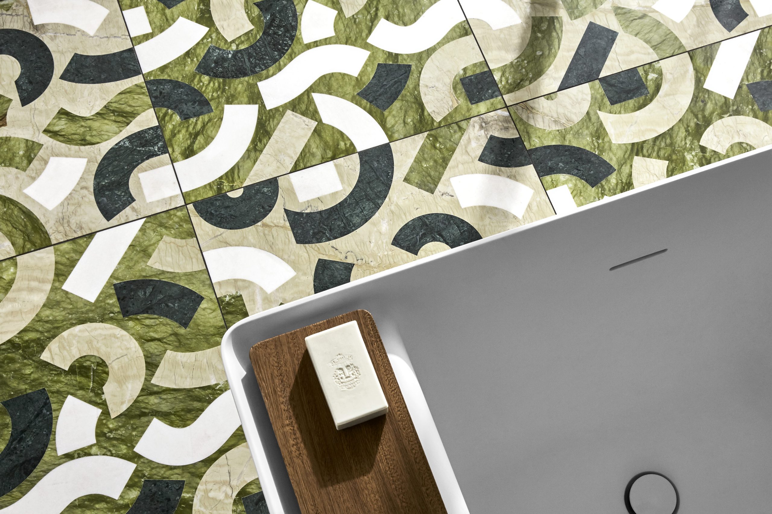 Pietre Incise, Cesello, Dissonanze, Opus. Molte collezioni di Lithos Design trovano applicazione in pavimentazioni e rivestimenti murali per l’ambiente bagno.