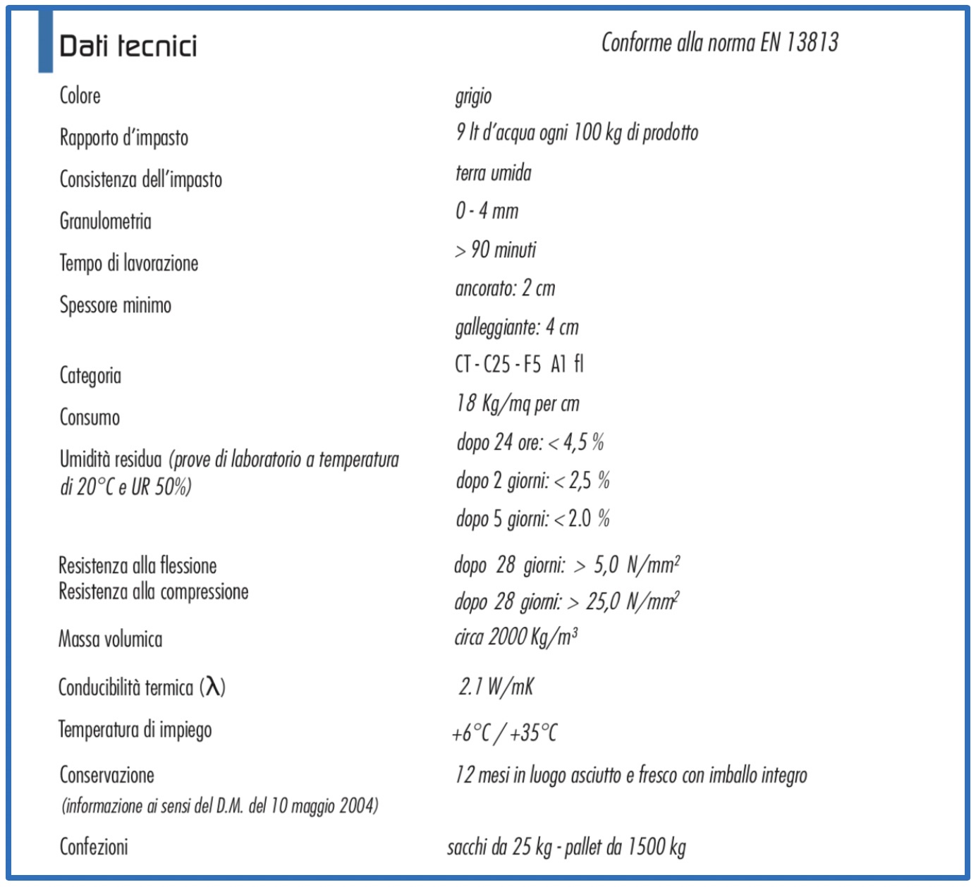 Materie prime finemente selezionate, esenti da impurità e ad alta resistenza certificano il prodotto nella classe CT-C25-F5-A1 fl (in accordo alla En 13813).