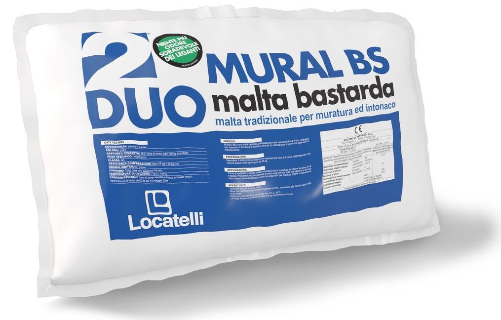 Mural BS, è la malta bastarda predosata tradizionale per eccellenza, composta con inerti selezionati fino a 3-5 mm, particolarmente versatile per favorire le opere in cantiere con un prodotto pronto per malta da intonaco o come malta per muratura di mattoni, blocchi di calcestruzzo e per piccoli interventi di manutenzione.