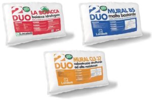 Frutto del know how e della continua ricerca dei Laboratori di Locatelli Intonaci, la linea Duo, grazie al suo packaging ottimizza e semplifica l’attività nel cantiere e si compone di numerosi prodotti predosati, tra questi La Boiacca, Mural Bs e Mural Cls 37.
