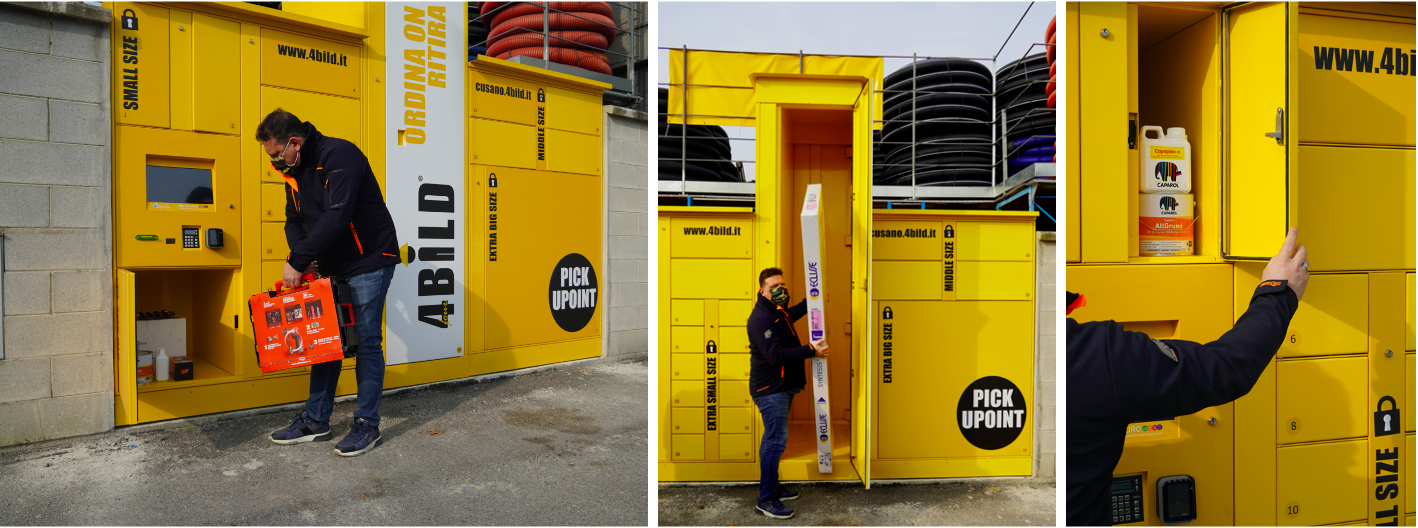 Utilizzare Locker – Al Sicuro è molto semplice: il cliente contatta il suo rivenditore (via whatsapp, on-line, via e.mail o telefonicamente) e procede al suo ordine; il distributore predispone la merce nel cassetto adatto del Locker e invia al cliente un codice e l’avviso che il materiale è pronto e a sua disposizione. L’ordine potrà quindi essere ritirato dal cliente in qualsiasi momento. Nel caso di richiesta di piccole attrezzature a noleggio, il cliente dopo l’utilizzo può restituire il prodotto, a qualsiasi ora, inserendolo nuovamente nell’apposito cassetto del Locker.