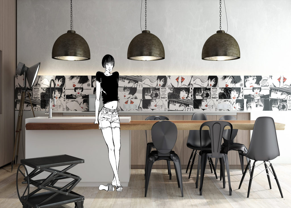 La nuova collezione di ceramiche di Del Conca ha il volto di Valentina, lo storico personaggio creato dalla matita del fumettista Guido Crepax. La nuova linea, richiamando i tratti del caschetto più famoso del fumetto d’autore, si caratterizza per la predominanza dei colori bianco e nero declinati in due decori differenti.