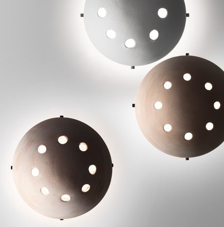 La forte matericità dell’involucro di terracotta in terra di Siena (nota per la particolare gradazione di marrone) e la caratteristica forma rendono la collezione perfetta per outdoor caratterizzati dal forte spessore del design. Con Ovo l’atmosfera nella notte diventa quasi fatata: la luce è emessa da un cerchio di fori all’apice del paralume, l’illuminazione crea un alone soffuso che gioca con la terracotta del paralume che ben si confonde con gli elementi naturali che lo circondano. Perfetto sia da solo che in gruppo, Ovo misura 44,2 cm di altezza e un diametro di 26 cm.