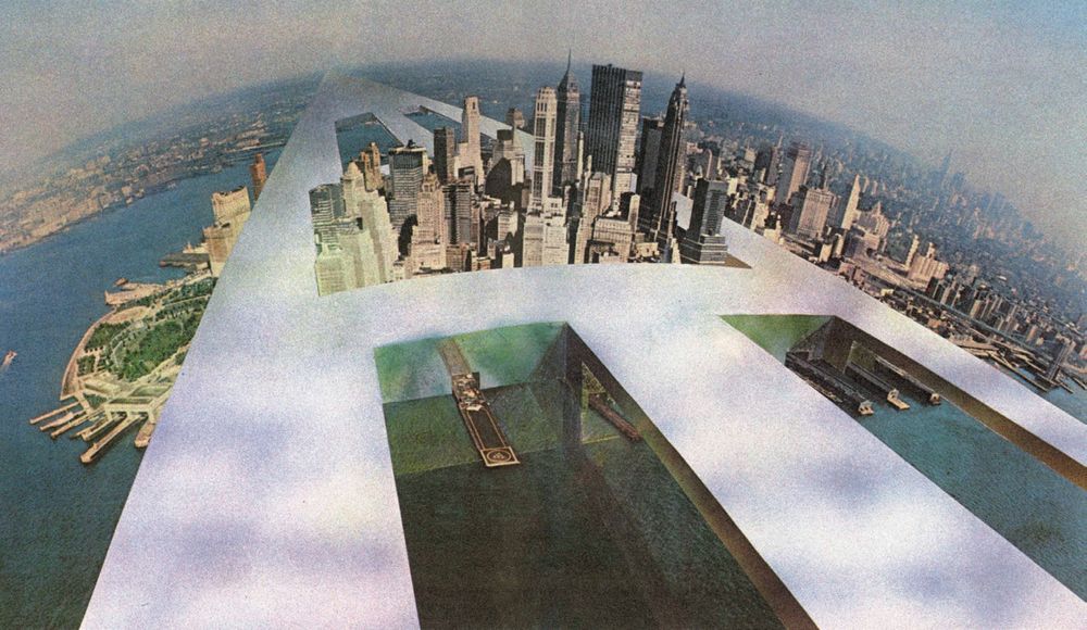 Il Monumento Continuo (Rockefeller Center 1969), fotomontaggio | © Adolfo Natalini/ archivio Superstudio.
