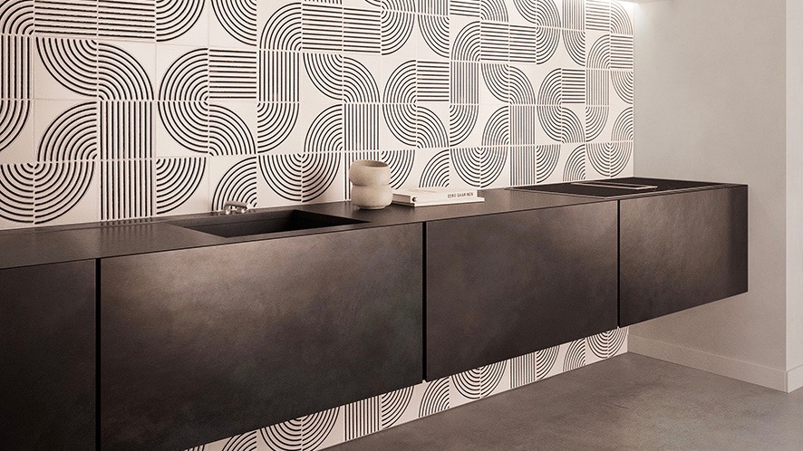 Varchi e finestre, scale e scalette, ombre, sole e mare. Questi i simboli attorno ai quali si sviluppa l’intera collezione che va a sottrazione o addizione in base al gusto di chi sceglie. Così è possibile costruire dei borghi o limitare il paesaggio ad una discesa a mare. Mediterraneo è il racconto del territorio che abbiamo nei nostri occhi, la Costiera Amalfitana, per poi allargarsi ai territori mediterranei del resto del mondo. Due le versioni: Mezzogiorno su fondo chiaro, rappresenta le ombre del sole che batte a Mezzogiorno; Mezzanotte su fondo scuro, rappresenta le ombre disegnate dal bagliore della luna.