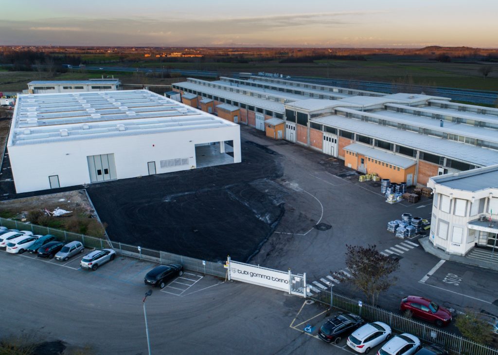 Magnetti Building è partner per la realizzazione del nuovo edificio industriale da 3000 m2 a Mirabello Monferrato (AL) per Tubi Gomma Torino, azienda specializzata nel settore della produzione delle tubazioni industriali in gomma. Caratteristica peculiare dell’intervento è rappresentata dal tetto, nel quale coesistono evacuatori di fumo, lucernai e pannelli fotovoltaici. Una copertura classica in TPO con distanziamenti che, grazie al sistema studiato da Magnetti, diventa evoluta e multifunzione, in grado di gestire gli elevati carichi d’incendio.
