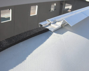 Dalla collaborazione con il Dipartimento di Ingegneria strutturale e Geotecnica dell’Università di Genova è nato il sistema costruttivo Acqua-Stop, costituito da un manto continuo in Tpo fissato alla copertura per induzione elettromagnetica, senza praticare fori.