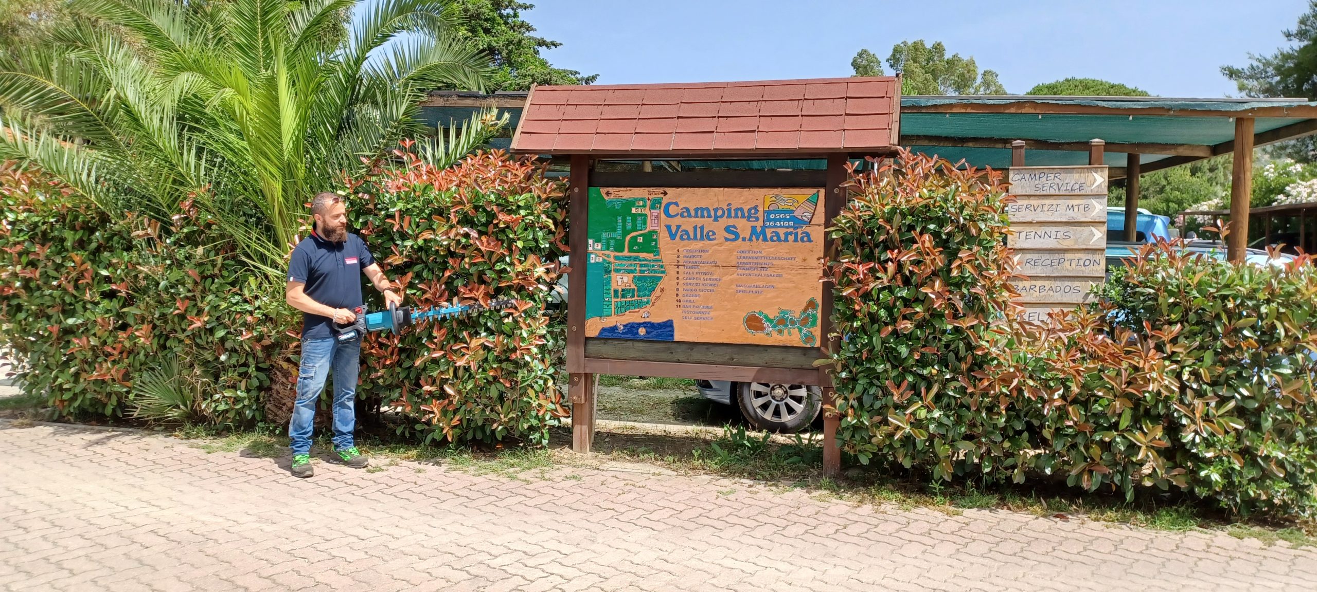 «Dopo avere acquistato il decespugliatore Makita 18Vx2 mod. DUR369LZ con larghezza di taglio di 430 mm, il Camping Villa Maria ha arricchito costantemente la propria dotazione di utensili in funzione di ciò che occorreva, restando sempre molto soddisfatto di ogni acquisto. La possibilità di avere un solo tipo di batterie LXT da 18V compatibile con tutte le attrezzature della stessa gamma, in particolare, ha rappresentato un grandissimo vantaggio per le necessità della struttura».