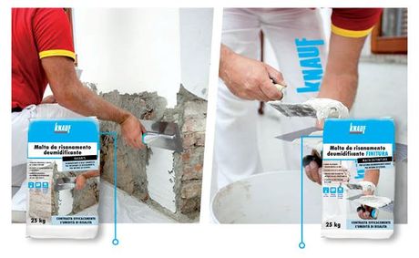 Una malta deumidificante microporosa per interni ed esterni che rispetto alle malte disponibili sul mercato può essere posata in un solo centimetro di spessore (7 millimetri il rasante e 3 millimetri la finitura). Si tratta di una malta da intonaco composta da una particolare miscela di leganti idraulici, inerti in opportuna curva granulometrica e speciali additivi che conferiscono all’impasto elevata porosità capillare e che consente di ottenere intonaci resistenti nel tempo all’aggressione dei sali e alla risalita d’umidità. La Malta deumidificante microporosa anticondensa è una soluzione efficace per risolvere i problemi di risalita capillare di umidità nei vecchi e nuovi edifici, nel risanamento e nella ristrutturazione di strutture murarie in genere, degradate dal tempo e dall’umidità, in applicazioni sia interne che esterne su murature in mattone, pietra e vecchie murature miste. La Malta è marcata Ce secondo la norma di riferimento Uni En 998-1 prodotto da Knauf di Castellina Marittima (Pi).