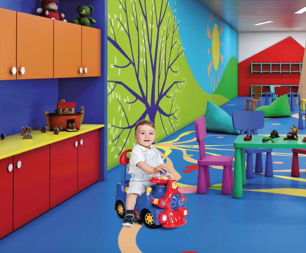 Scelte di qualità che favoriscono il benessere e rendono più facile mantenere nel tempo le pavimentazioni nelle migliori condizioni di igiene e bellezza. Mapefloor Comfort System determina un’elasticità ideale delle superfici, anche nel caso di calpestio frequente ed intenso, ad esempio in asili e centri ricreativi.