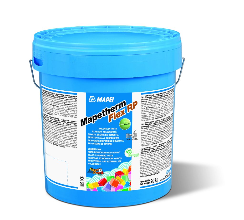 Grazie alla tecnologia BioBlock, Mapetherm Flex RP presenta un’elevata resistenza alle muffe e alle alghe; è un rasante rapido, con tecnologia Fast Track Ready che consente di ridurre i tempi di lavorazione, in quanto non è necessario attendere i tempi di stagionatura tipici dei rasanti a base cementizia. La tecnologia Ultralite, infine rende Mapetherm Flex RP un prodotto “leggero”, facile da applicare.