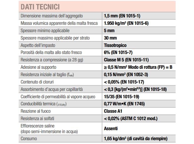 - Realizzazione di paramenti murari con una malta da muratura a prestazione garantita;