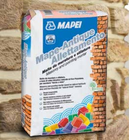 Mape-Antique Allettamento è una malta da muratura resistente ai sali, a base di calce idraulica naturale ed Eco-Pozzolana, per la stilatura e l’allettamento di murature “faccia a vista”.