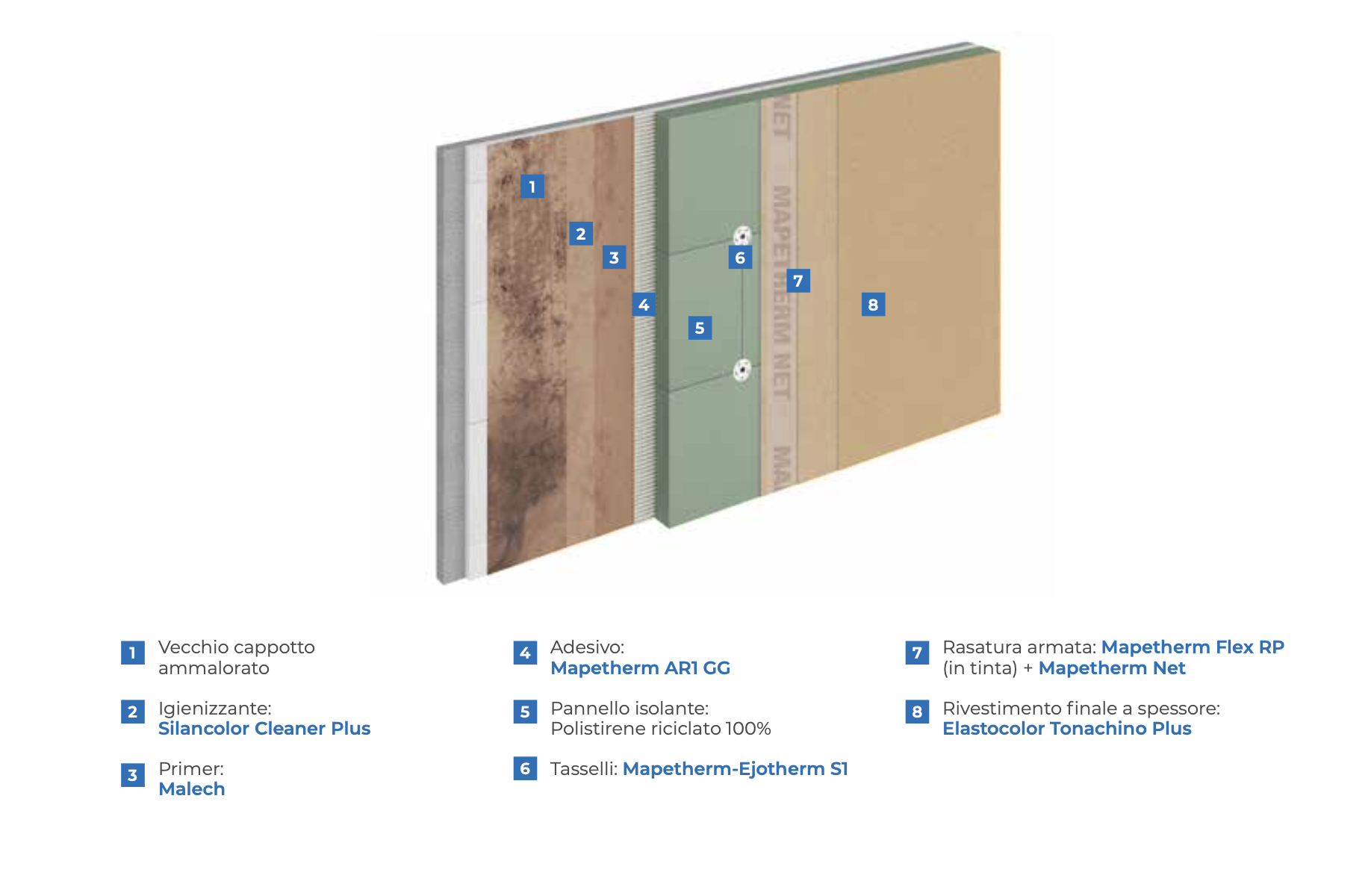 «Grazie alla tecnologia Mapei è possibile realizzare sistemi a cappotto che garantiscono la massima prestazione, durabilità e sostenibilità. I sistemi Mapei consentono, infatti, di progettare e realizzare le soluzioni funzionalmente più idonee alle caratteristiche strutturali, ambientali e del supporto, in base ad ogni specifica esigenza o richiesta della committenza» Marco Grossi, Specialista Linea Isolamento Termico Mapei