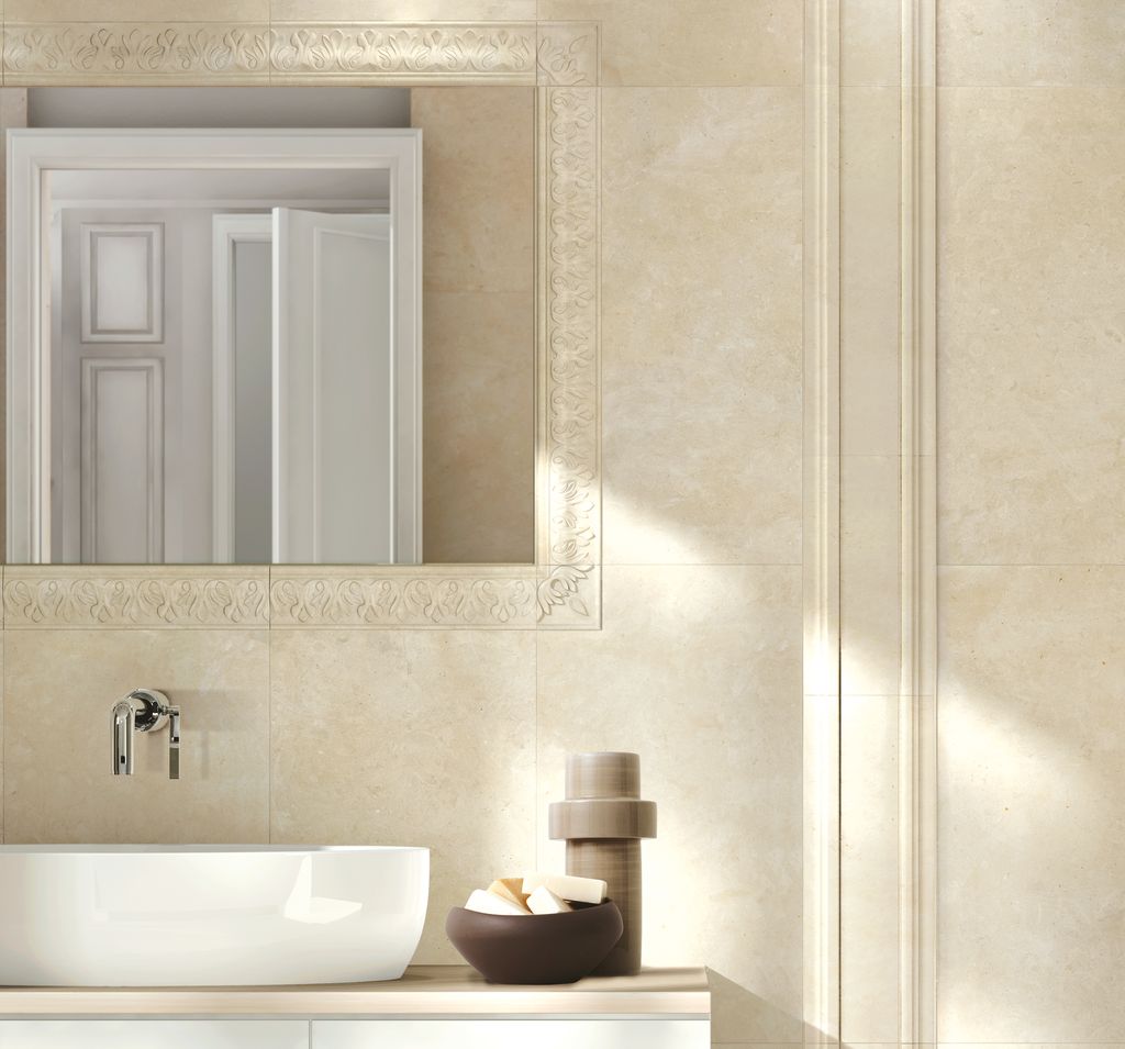 Realizzata in grès porcellanato e disponibile sia per pavimento che per rivestimento a parete, la collezione Pietra di Noto si ispira, nelle tenui tonalità proposte (beige, bianco, grigio, tortora), agli edifici in pietra della celebre località barocca siciliana. Alle piastrelle monocromatiche, dai toni disomogenei e sfumati, si abbinano moduli dai delicati decori floreali “ton sur ton”.