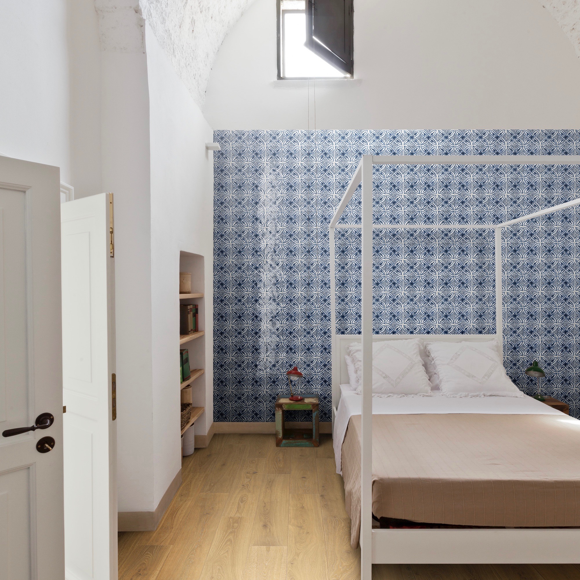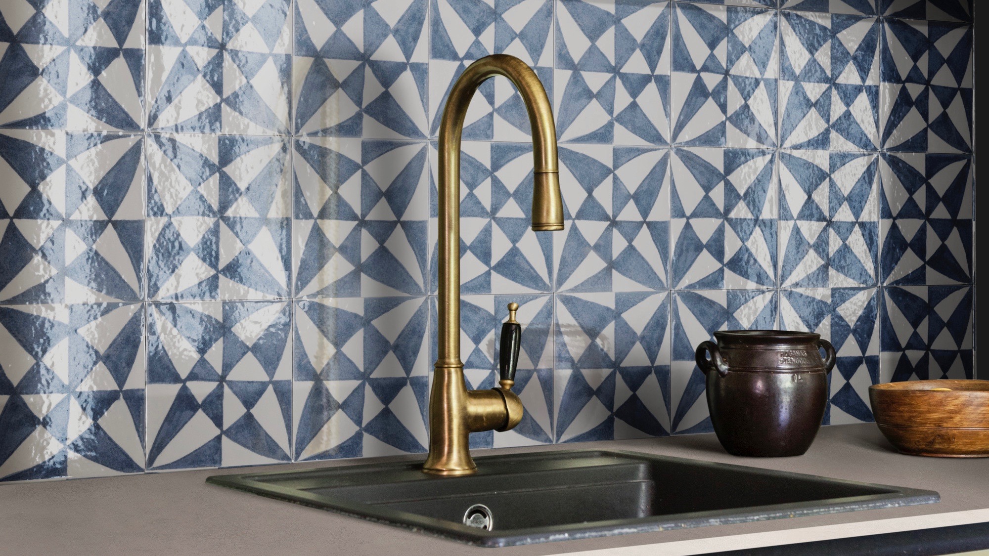 Disponibile nell’unico formato 15x15cm, abbina piastrelle lucide ai richiami a decori classici della tradizione ceramica. I fondi della superficie sono duplici: semi-opaco nei colori bianco, blu e nero per le mattonelle a campo pieno e per il decoro a struttura tridimensionale; lucida per i cinque soggetti decorativi, che appaiono geometrici o più organici.