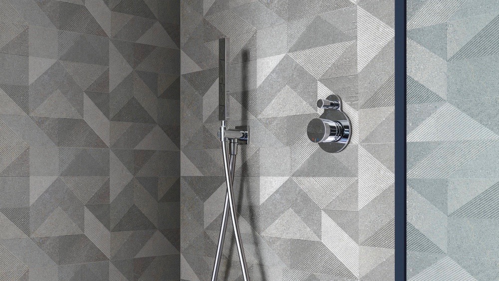 Il rivestimento nei colori grigio, bianco e beige nell’inedito formato 33×100 completa la collezione grazie con strutture 3d, decorazioni e listelli che “muovono” le pareti e creano quinte dal forte impatto visivo.