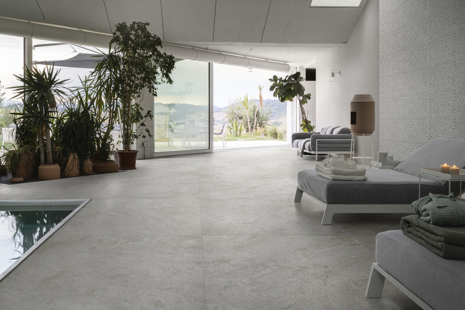 La collezione si sviluppa in 5 colori neutri: Bianco, Beige, Taupe, Grigio e Cenere che trovano la loro massima espressione nel nuovo formato quadrato 100×100 che si affianca al 60×120 più tradizionale