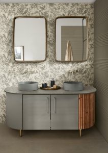 Una palette di colori densi e vibranti – blu, bianco, avorio, salvia, terracotta, ocra e tabacco – espande le sue potenzialità compositive grazie alla struttura tridimensionale Duo, caratterizzata da due volumi e applicabile a fasce alternate o a tutta parete. I motivi originali rappresentano una miscela creativa unica per enfatizzare quinte e intere pareti dalla grande resa scenica, anche negli ambienti doccia.