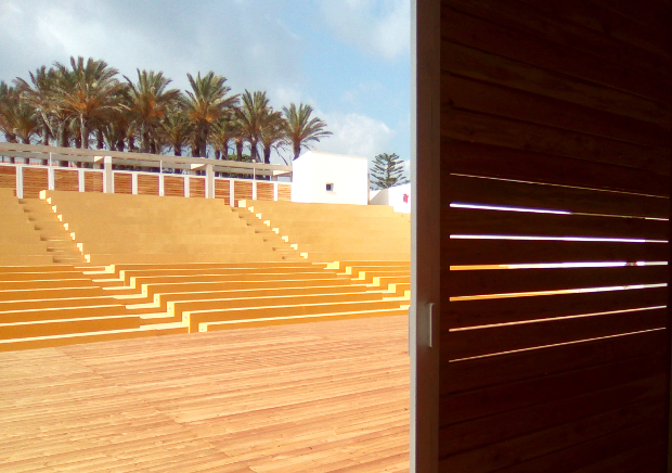 Le relazione visive con il mare e il sistema dei percorsi disegnano una arena che può ospitare fino a 1000 spettatori, palco e retropalco, camerini, cabina di regia, biglietteria e servizi.triscina_04