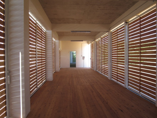 Il palco e gli ingressi nord e sud sono interamente rivestiti in legno e il retropalco si presenta come una sorta di box chiuso da pannellature lignee.triscina_05