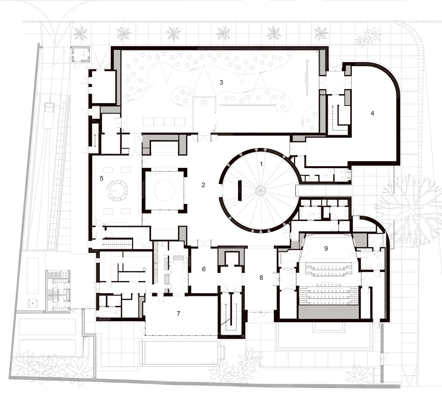 Per ragioni climatiche, l’orientamento dell’edificio prevede che i locali espositivi si- ano disposti a nord e i locali di conservazione e archivio nell’interrato.