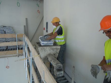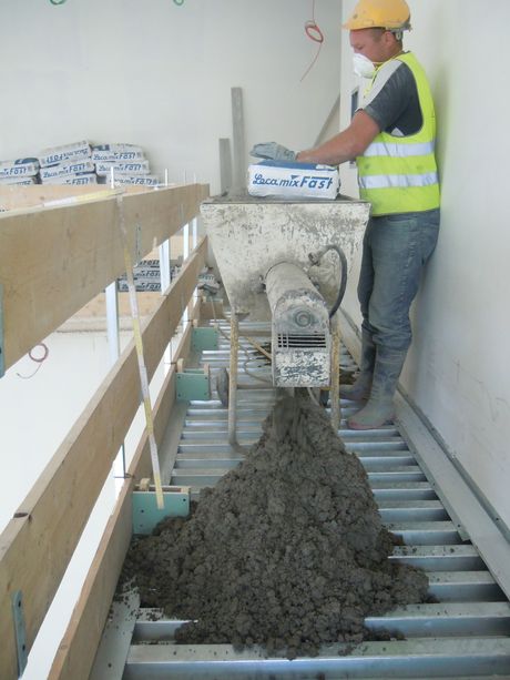 Inoltre la particolare logistica del cantiere rendeva non attuabile il pompaggio diretto in opera dei sottofondi premiscelati, ossia la soluzione di posa più rapida e consigliabile viste le ampie superfici interessate dall’intervento. Si è quindi optato per una soluzione che ha previsto l’impiego combinato di tre prodotti per massetti di finitura Laterlite – Lecacem Mini, Lecamix Fast e Massettomix Paris – preparati con l’impastatrice e poi gettati in opera.