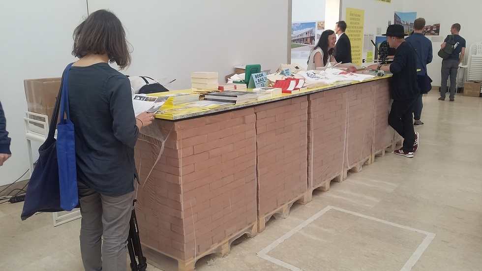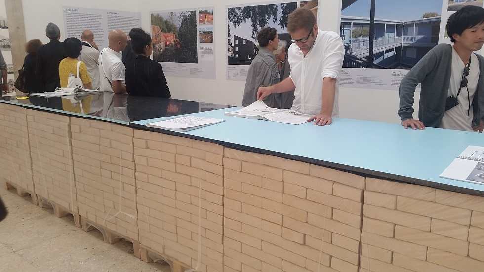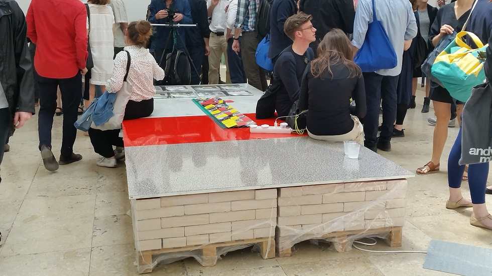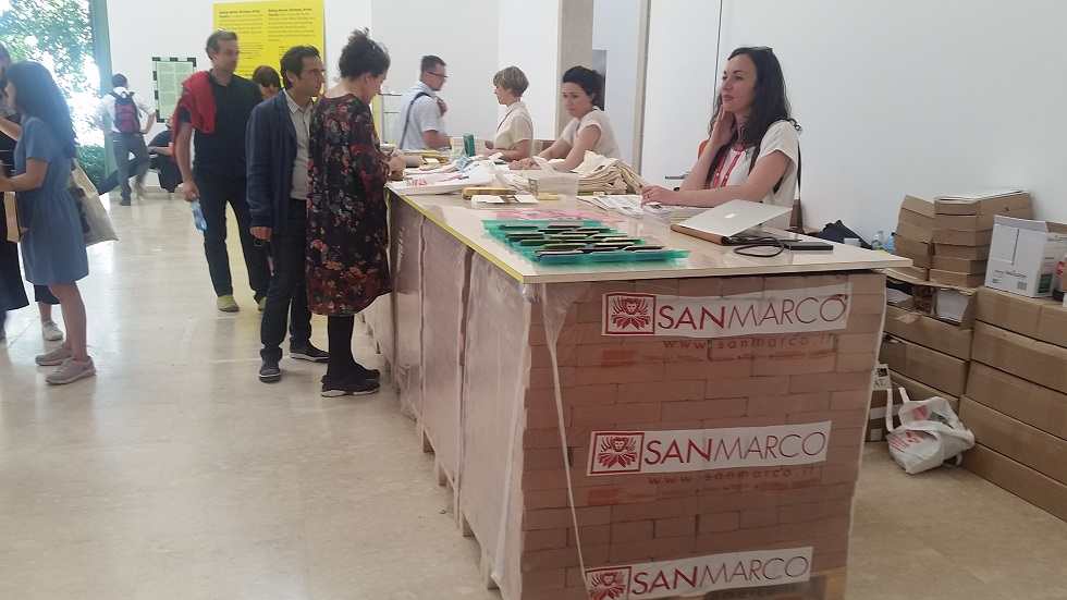 Questi laterizi, disposti in modo compatto con altezze diverse a realizzare sedute, tavoli di studio oppure basi per l’appoggio della documentazione esposta, simboleggiano anche idealmente i materiali da cui partire per una necessaria ridefinizione architettonica ed urbana delle Arrival City.