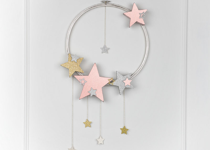 Per rallegrare l’atmosfera della casa donandole uno spirito natalizio si può ricorrere a ghirlande fatte in casa: per esempio la ghirlanda decorata con stelle. Realizzarla è semplicissimo, bastano un cerchio da ricamo, delle stelle in legno e le vernici spray di Rust-Oleum. Basta verniciare il cerchio da ricamo con la con la vernice Spray metallico oro, e le stelle con Spray rose gold e lo Spray glitter super scintillante. A questo punto bisogna assemblare tutto con la colla a caldo. Infine gli smalti satinati di MaxMeyer sono utili per aggiungere un tocco di colore. Il risultato sarà una ghirlanda scintillante, elegante e super originale.